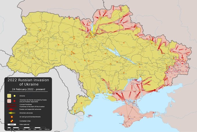 Ukrayna’da Rus işgalinin son durumunu gösteren harita ise 12 Mart itibarıyla şöyle oldu: