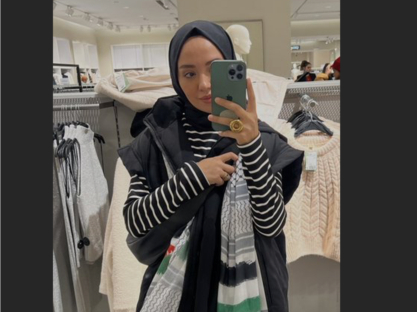 “Az önce Zorlu Center’dan çıktım. Bugün de her zaman olduğu gibi kefiyemi takıp öyle dışarı çıktım. AVM’den içeri girerken güvenlik görevlisi böyle içeri giremeyeceğimi söyledi, öncesinde bana ‘Nereye geldin?’ gibi saçma bir soru sordu. Ben de onlara ‘Neden?’ diye sordum. Çünkü üzerimde herhangi bir terör örgütü bayrağı veya tehlikeli bir şey taşımıyordum. Bana yönetmeliğin böyle olduğunu söylediler. Ben de bunun üzerine haklarımı bildiğimi ve polis çağırıp beni buradan çıkartabileceklerini söyledim. Ardından içeri girdim. İşin daha kötü kısmı iki tane güvenlik arkamdan gelip beni takip ettiler. Girdiğim mağazalarda kapıda beklediler. Fazlasıyla rahatsız oldum. Yani bugüne kadar kimse mi kefiye ile AVM’ye gitmedi? Bu kefiye benim için siyasi değil insani bir simgedir.”