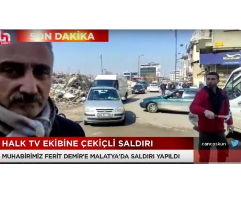 İkinci haber: “Halk TV muhabiri Ferit Demir, deprem bölgesindeki eksikleri anlattığı canlı yayın sırasında ‘Yalan söylüyorsunuz. Hepinizi öldürürüm’ diyen kişinin saldırısına uğradı. Polis, ‘Vurmadı’ diyerek işlem yapmadı. Ferit Demir: ‘Oradan geçen iki vatandaş doğruları anlatıyor dedi. Onları da tehdit etti, sizi de öldürürüm dedi. Uzun süre sizi öldürürüm, vururum, hükümete bir şey söylemeyeceksiniz diye tehditlerde bulundu. Elinde çekiç de vardı. Sonra iki polis memuru geldi, şikâyetçi olduğumuzu söyledik ama herhangi bir işlem yapmadı. Size vurmadığı için, kafanıza vurmadığı için işlem yapamam. Belki bir sıkıntısı vardır gergindir dediler. Yelekleri üstündeydi. Israrla şikâyetçi olduğumuzu söyledik, çekiçle size vurmadığı için işlem yapamayız dediler.”