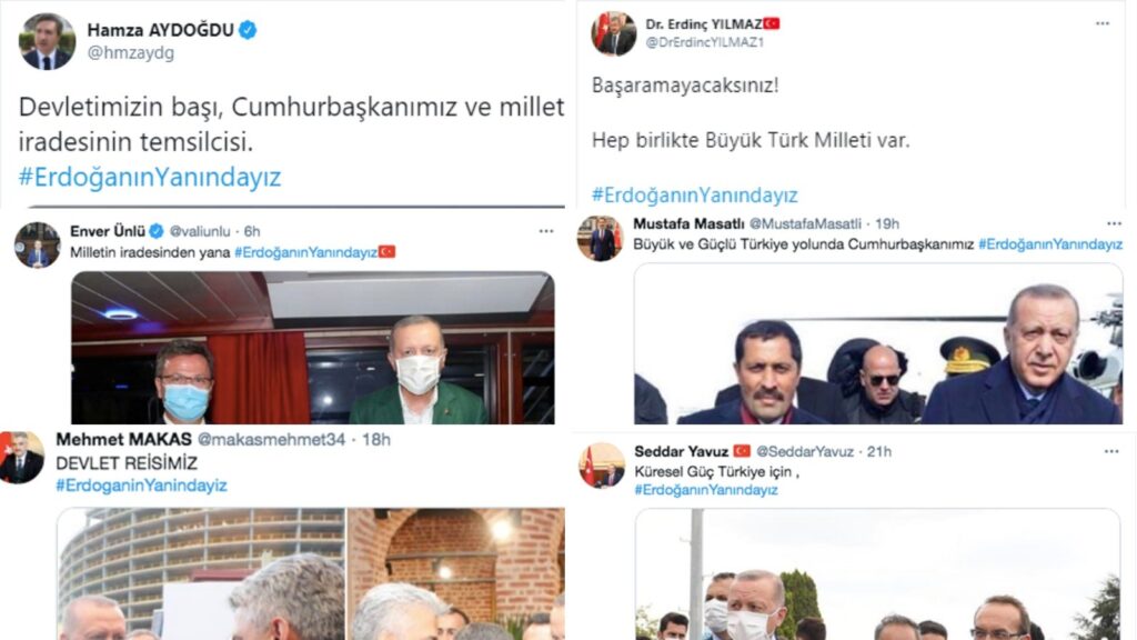 Ama Trabzon Valisi yalnız değildi. 10 ilin valisi de onaylı resmi hesaplarından Erdoğan’a destek kampanyasına katılmışlardı.