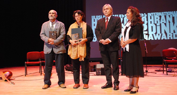 Ödül alan bu kez Kolombiya’dan bir avukat kolektifi oldu. Bunlar Kolombiya’daki, gerillalarla hükümet arasındaki çatışmalarda ya da uzlaşmalarda da belli roller alan bir grup. Ödülün bir koşulu var: Türkiye’ye gelmek. Mutlaka ödülün burada alınmasını ve ödülü alan kişilerin ya da kişinin bir konuşma yapmasını isterdik, yine öyle oldu. Çok güzel bir konuşma yaptılar. Kolombiya’yı anlatan, insan haklarını anlatan bu işin evrenselliğinin bir kez daha altını çizen. Her yıl verilen kaliteli ödüllerden birisi oldu Kolombiya kolektifine
