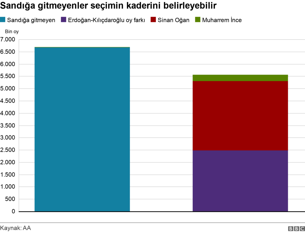 Bu, 42 ilde sandığa gitmeyen seçmen sayısının toplamına denk bir rakam.