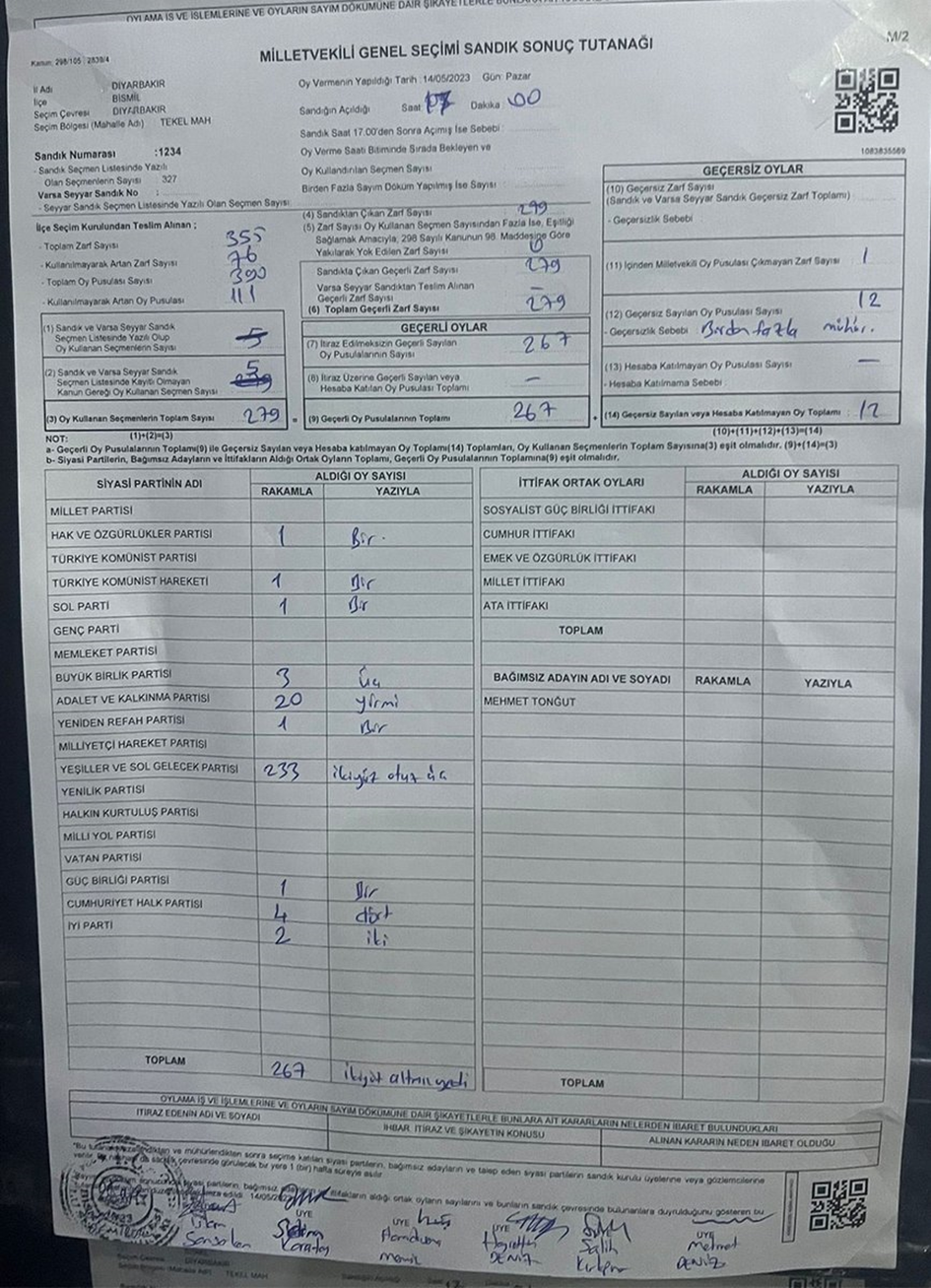 Önce şunu açıklamakta fayda var. Paylaşımlarda kullanılan ıslak imzalı sandık sonuç tutanağı YSK tarafından görevlendirilen sandık kurulunun oy sayımı sonucunda oluşturduğu bir tutanak. Bu tutanakta herhangi bir sorun yok. Oylar zaten doğru yazılmış.