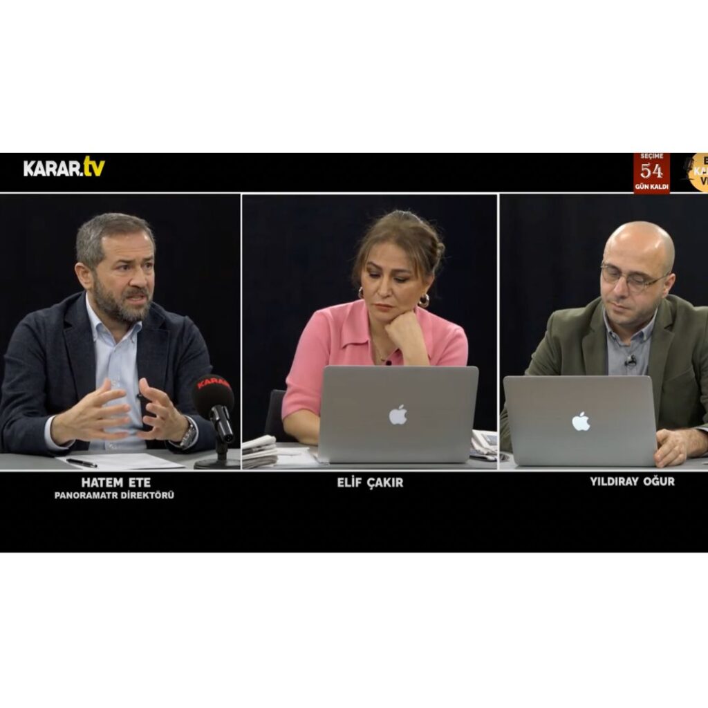 Karar TV’de Yıldıray Oğur ve Elif Çakır’ın konuğu olan PanoramaTR Araştırma Direktörü Hatem Ete, CHP lideri Kılıçdaroğlu’nun Millet İttifakı’nın ortak Cumhurbaşkanı adayı açıklanmasının ardından anketlerdeki son durumu anlattı.