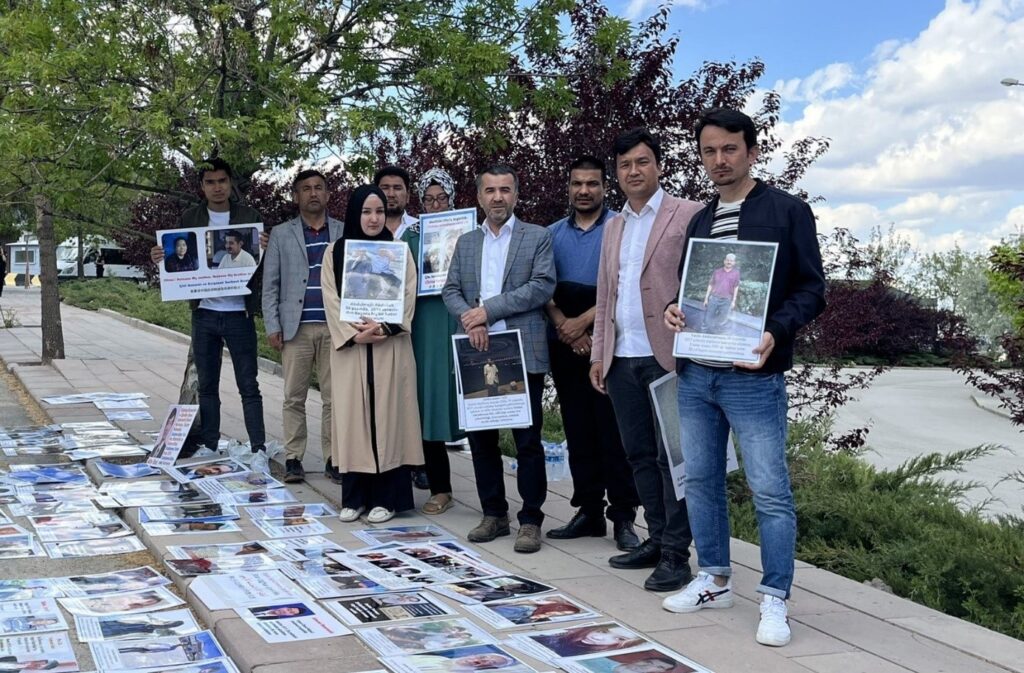 Yakınları Çin’in “Yeniden Eğitim Merkezi” dediği kamplarda zorla tutulan Türkiye’deki Uygurlar, BM İnsan Hakları Yüksek Komiseri Michelle Bachelet’in Çin ziyaretinin başladığı Salı gününden (24 Mayıs) beri Ankara’daki Çin Büyükelçiliği’nin önünde oturma eylemi yapıyor.
