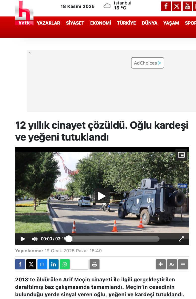 19 Ocak 2025 günü ajansların geçtiği ve bütün büyük medyada yer alan bir haberde Mart 2013’te yine Diyarbakır’da işlenmiş olan Arif Meçin (54) cinayetinin 12 yıl sonra “daraltılmış baz” yöntemiyle “aydınlandığı” iddiası hiçbir şüphe belirtilmeden, kesin bir bilgi olarak duyuruluyordu.