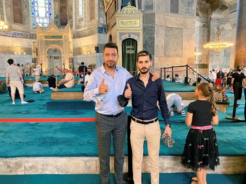 Burak Bayırlı, ilk namazını da Milli Beka Hareketi Genel Başkanı Murat Şahin ile Ayasofya’da kıldı.
