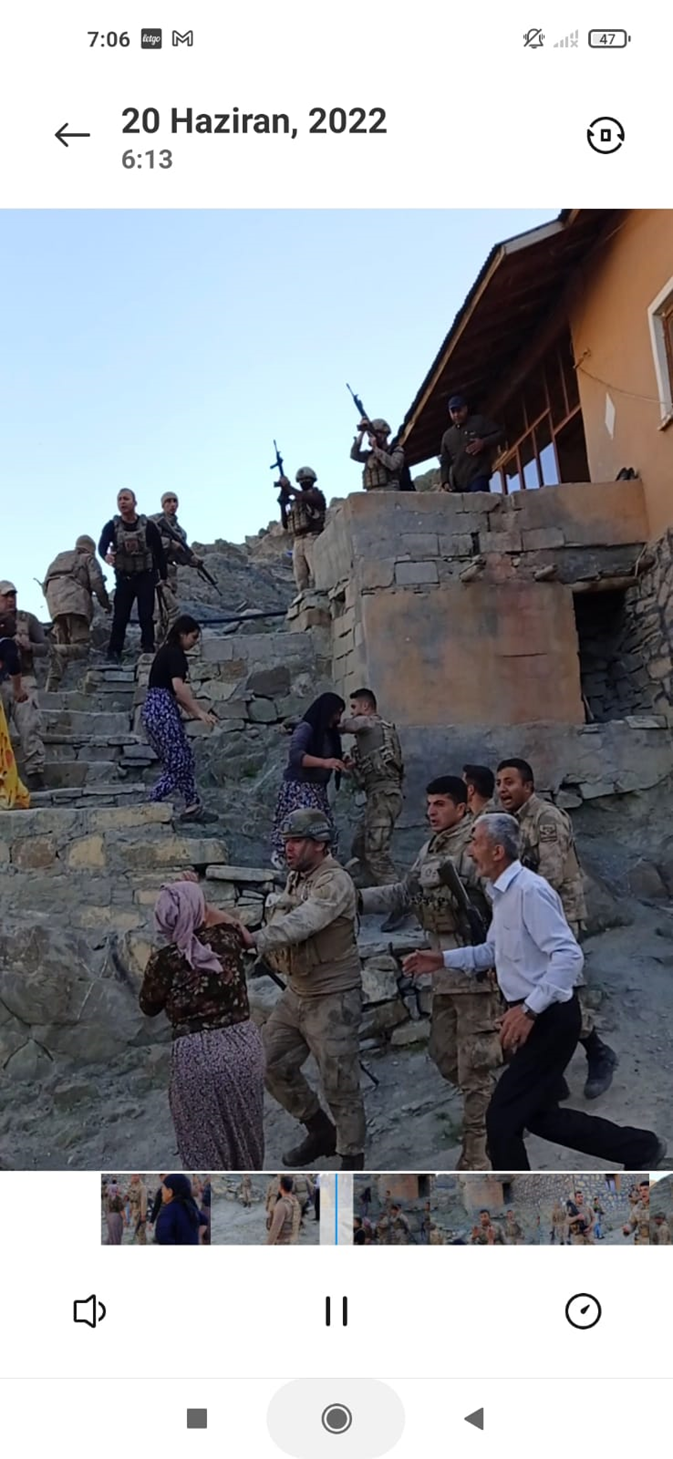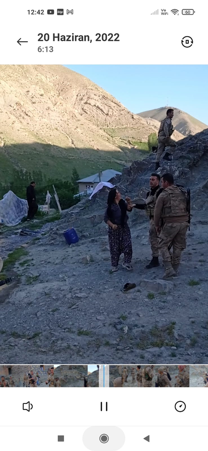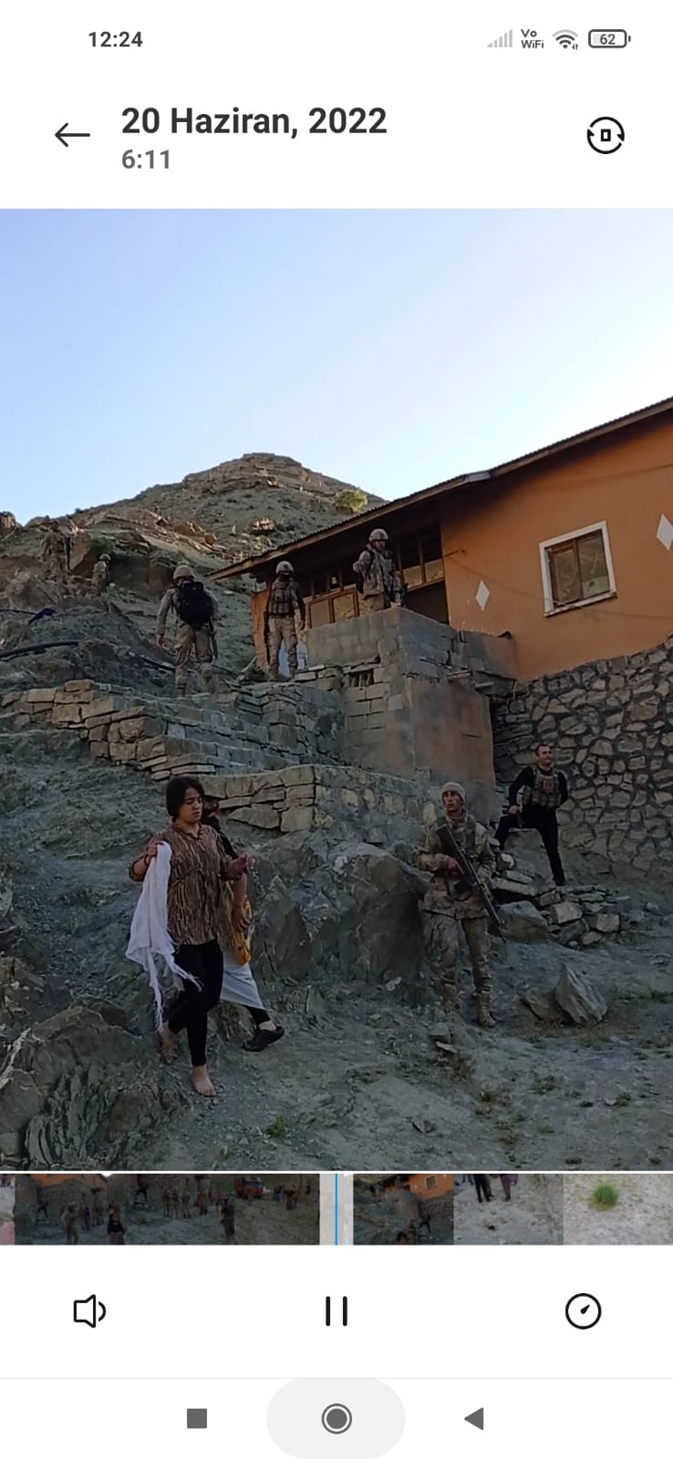 ‘Kapıya geldiklerinde hoş geldiniz dedik cevap vermediler ve “konuşmayın kadınlar” dediler. Kaynanam için ‘Şehit karısıdır’ dedim sus konuşma gerekirse silah dayarım kafasına dediler. Çekim yapmak istedim bağırıp engel oldular. Çekim yaptığımda itip geri ittiler. Sonra kadınlara ve çocuklara tokat atmaya başladılar.”