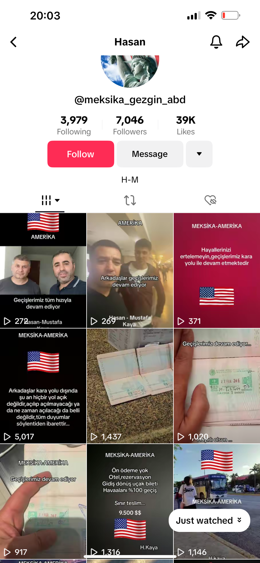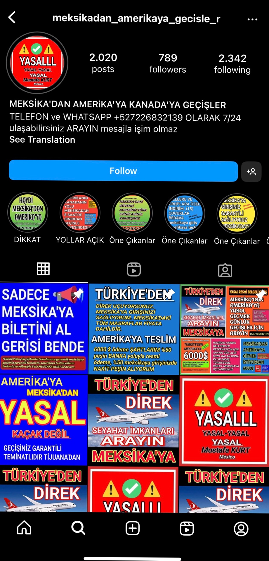 Kaçakçılık şebekelerinin hesaplarında, sürece dair bilgilendirmeler ve ABD’ye kaçak yollarla gidenlerin teşekkür videoları yer alıyor.