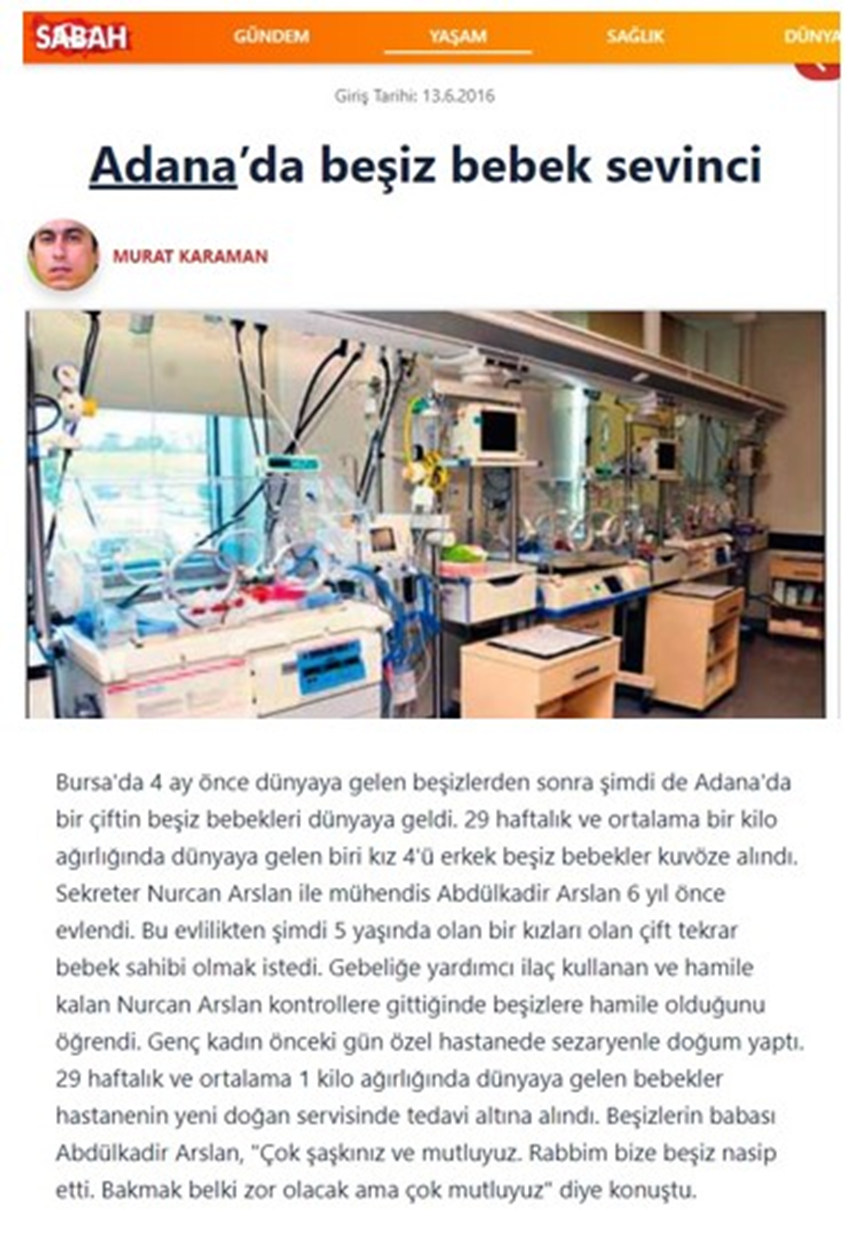 “Adana’da beşiz bebek sevinci”