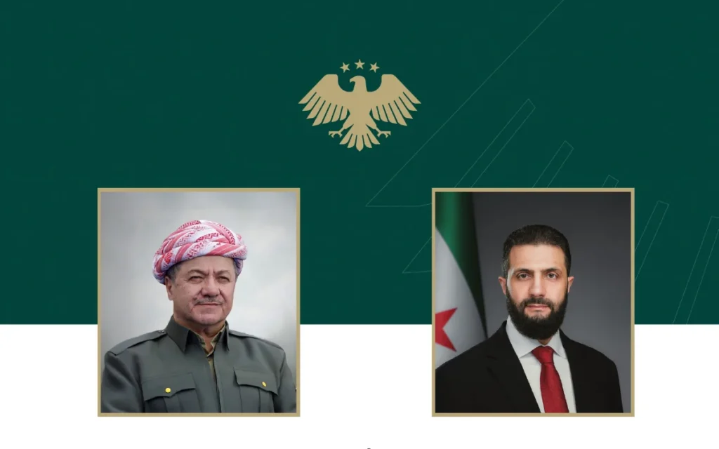 Suriye Cumhurbaşkanı Ahmed Şara, KDP lideri Mesud Barzani ile telefonda görüştü.