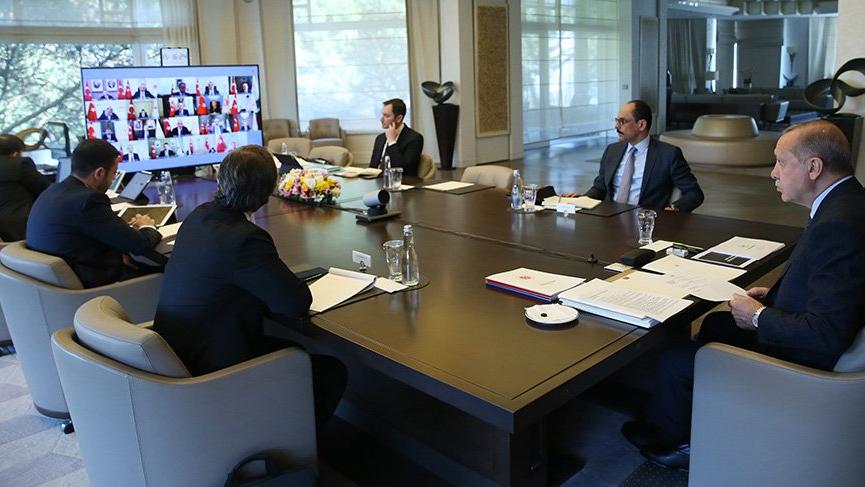 Cumhurbaşkanı Recep Tayyip Erdoğan bugün bir süredir yakın kurmaylarıyla mesaisini sürdürdüğü Huber Köşkü'nden beşinci dijital kabine toplantısına başkanlık edecek. Toplantıda gündemi ağırlık olarak koronavirüse karşı alınan tedbirler ve salgının ardından normalleşme döneminde atılacak adımlar oluşturacak.