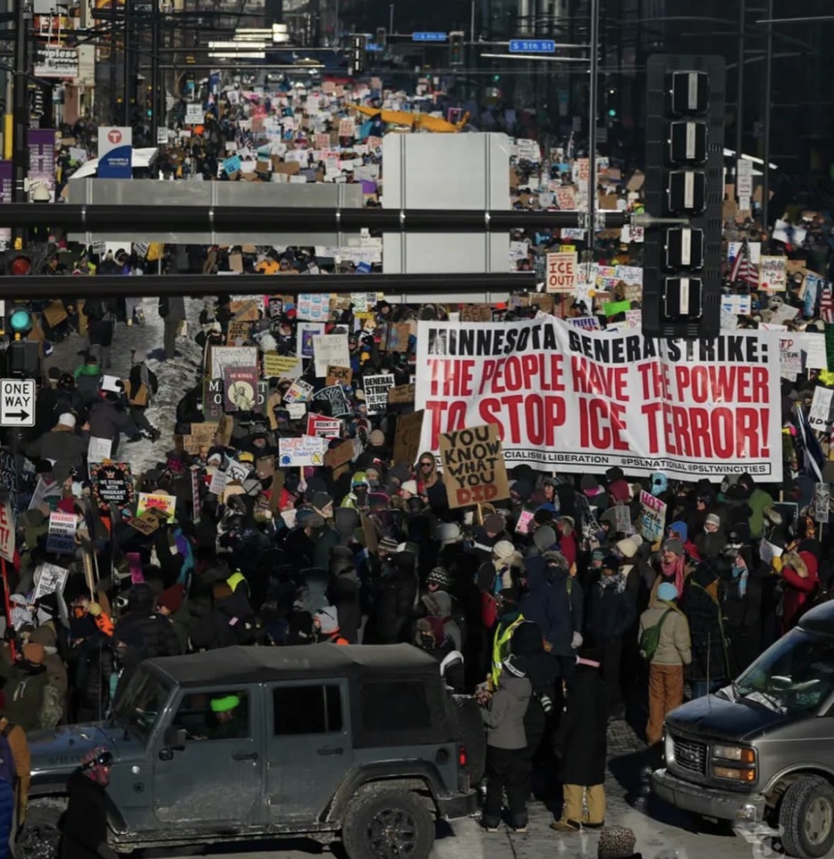 Cuma günü düzenlenen yürüyüşlerin, eyalette mevcut göç politikalarına karşı bugüne kadarki en büyük protesto olduğu belirtiliyor. Binlerce kişi, şehir merkezinde Minnesota Timberwolves’un NBA salonuna doğru yürüyerek ICE karşıtı sloganlar attı, müzikler çaldı.
