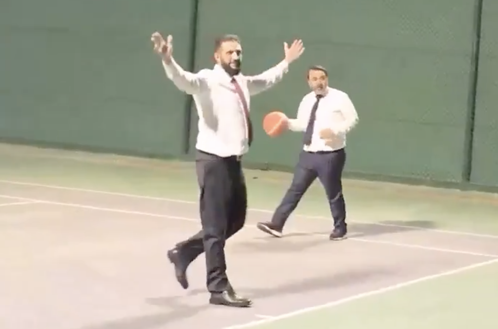 Cumhurbaşkanı Ahmed Şara ve Suriye Dışişleri Bakanı Esad Hasan Şeybani, gece saatlerinde boş bir basketbol sahasında şut atarken görüntülendi.