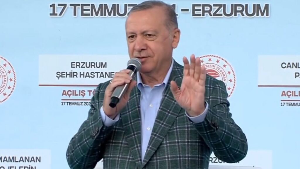 Cumhurbaşkanı Erdoğan, Erzurum’da konuştu: “Hanım kardeşlerimden, ana kademedeki kardeşlerimden, gençlerimizden kapı kapı dolaşmalarını istiyorum. Durmak yok. Dolaşacağız. Hala emperyalistlerden umut umanlar varsa, varsın boyunlarındaki zincirin ucunu kime istiyorsa ona versin.”