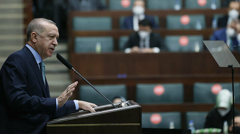 Cumhurbaşkanı ve AK Parti Genel Başkanı Erdoğan, partisinin Meclis grubunda milletvekillerini ayağa kaldırıp Rabia işareti yaptırdı ve “tek millet” sözlerini tekrarlattı.