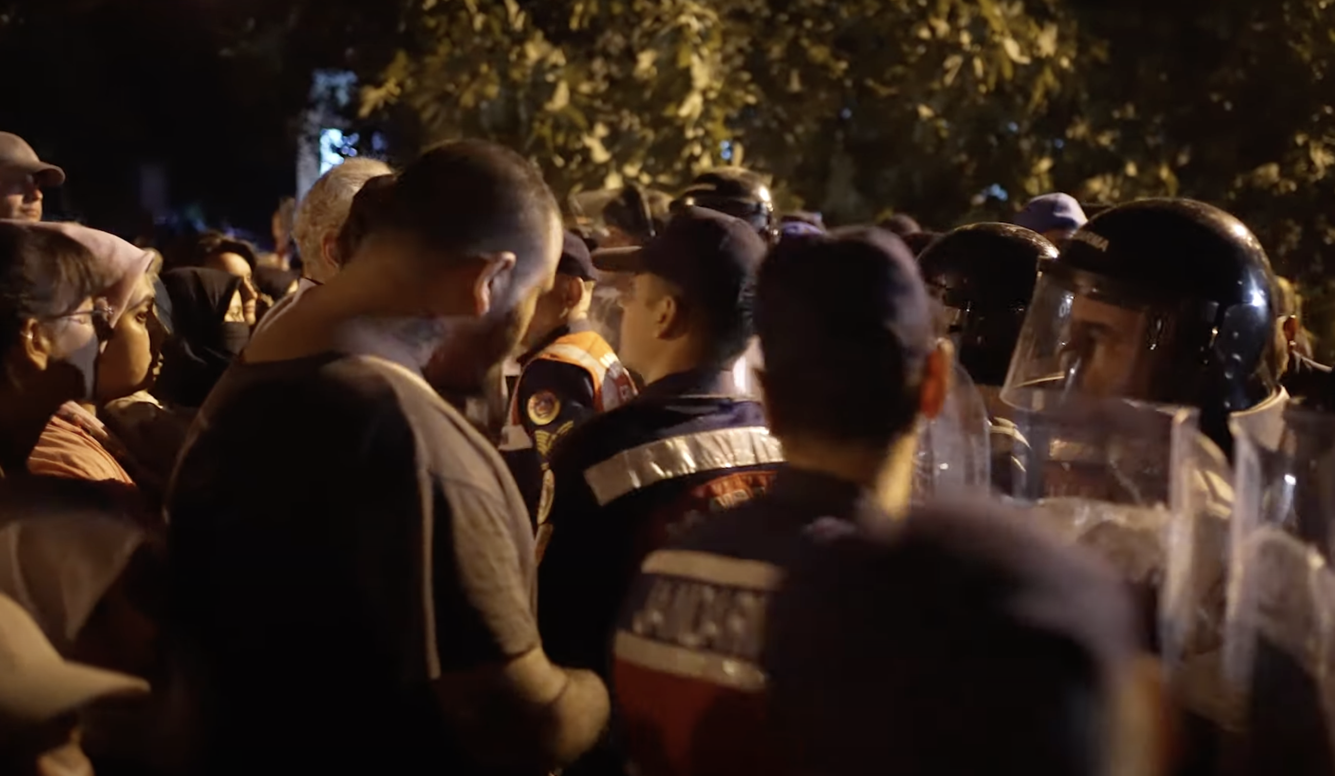 Aydın Mezeköy'de köylüler, arazilerinin üzerine Jeotermal Elektrik Santrali yapılmaması için direniyor. İş makinelerinin girişini engellemeye çalışan köylüler, jandarmanın karşısında teşrik tekbiri getirdi.