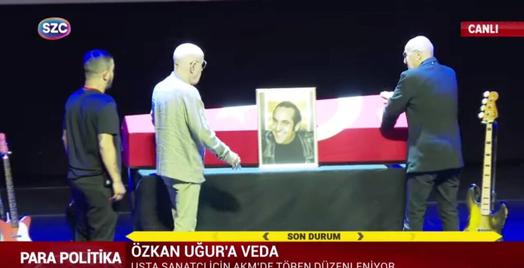 Özkan Uğur için İstanbul'da Taksim Atatürk Kültür Merkezi'nde veda töreni düzenlendi. Törende konuşan Mazhar Alanson, MFÖ'nün efsanevi şarkısı 'Ele Güne Karşı'nın sözlerini Özkan Uğur için söyledi.