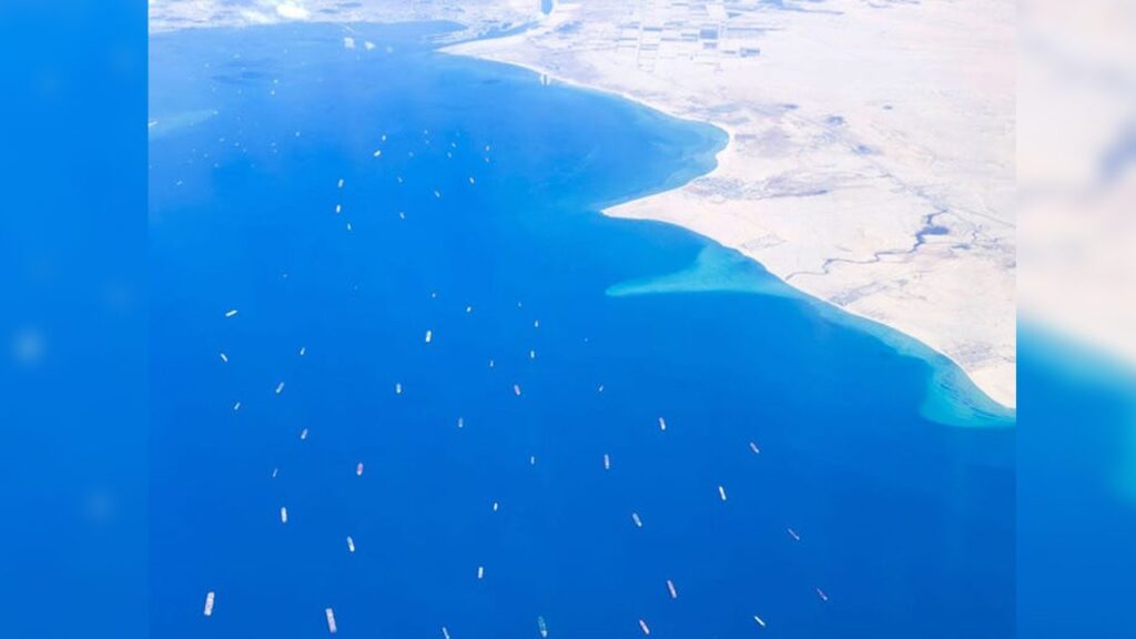 Süveyş Kanalı’ndaki deniz trafiği havadan görüntülendi