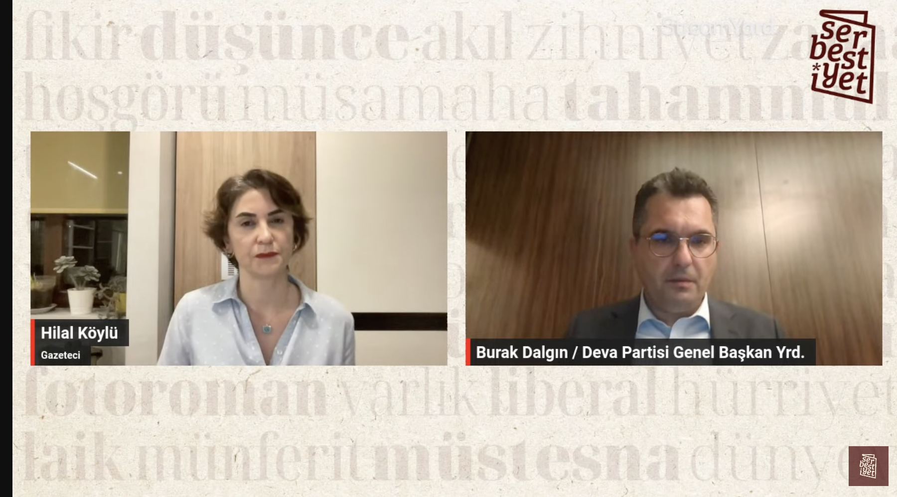 DEVA Partisi Balıkesir Milletvekili Burak Dalgın, Serbestiyet YouTube kanalında Şimdiden Seçim 2024'e konuk oldu: "Meclis'te yaptığım konuşmada Celal Bayar'ın 45 yıl önce söylediği 'Bu kış Türkiye'ye komünizm gelecek' sözünü yarı ironiyle söyledim. Türkiye'de komünizm kelimesine büyük alerji var ama komünizme bayağı yatkın bir ortamda yaşıyoruz. Devlet kredilerin yarısını veriyor, bakkal işletiyor, televizyon işletiyor, bir sürü ürünün fiyatını belirliyor, insanlar tweetlerini yazıp yazıp siliyor."