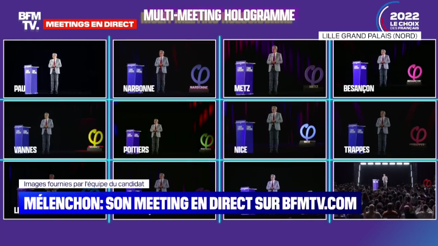 VİDEO HABERHaberlerManşet VİDEO HABER | Boyun Eğmeyen Fransa Partisi’nin (komünist) lideri cumhurbaşkanı adayı Jean-Luc Mélenchon hologramla Fransa’nın 11 kentinde aynı anda miting düzenledi Serbestiyet - 6 Nisan 2022 - 01:04