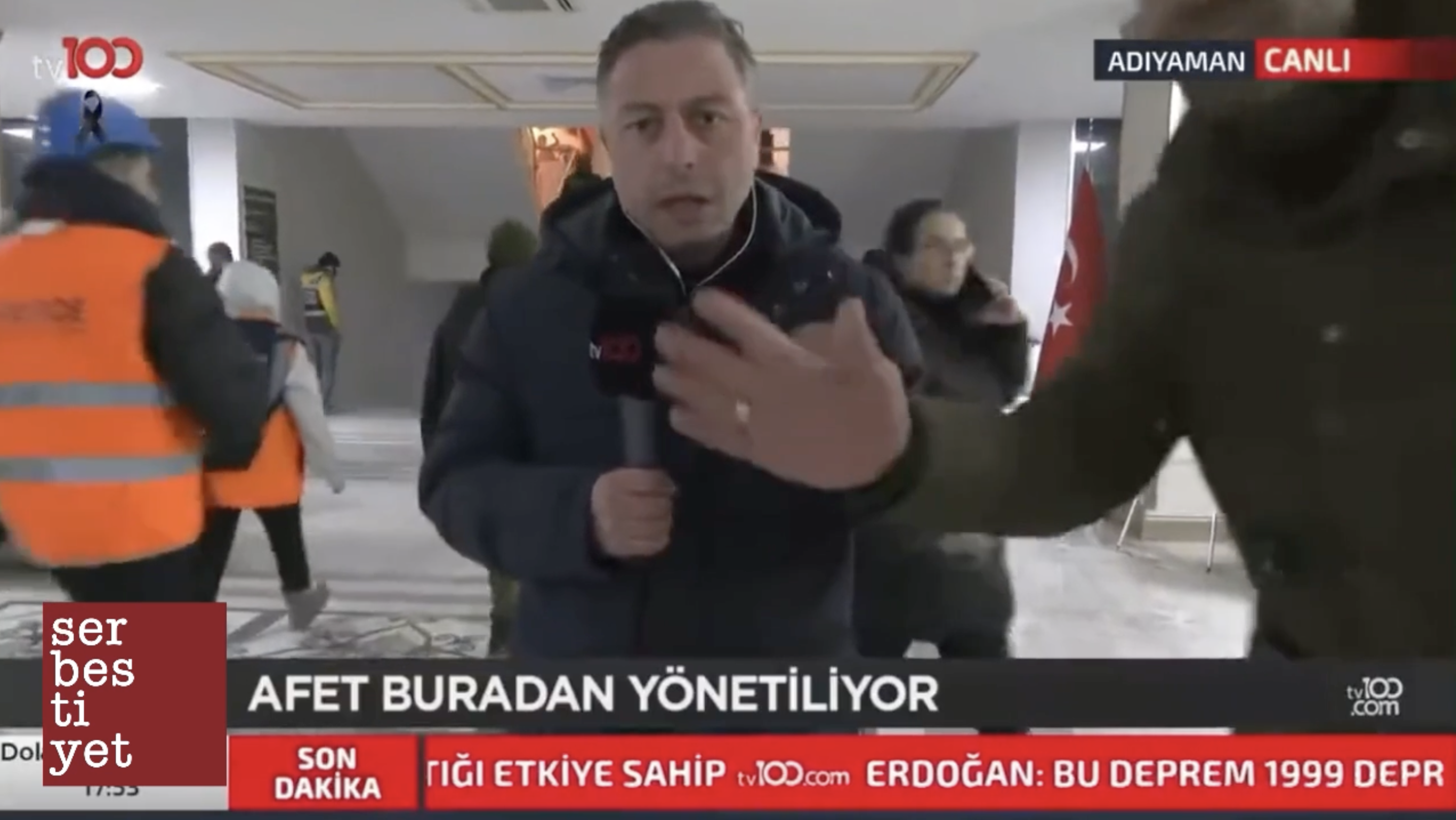 Arama-kurtarma çalışmalarının yetersizliği konusunda seslerini canlı yayında duyurmak isteyen depremzedeler sansüre maruz kalıyor.