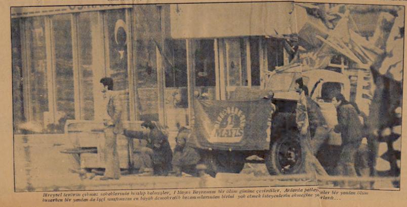 “DİSK’in öncülüğünde düzenlenen 1 Mayıs, tören dün tam bittiği sırada “Maocu” ve “terörist” oldukları iddia edilen grupların silahlı saldırısına uğramıştır. Polisin panzerler ve ses bombalarıyla saldırgan gruba müdahale etmek istemesiyle olay birden büyümüş, alanda kısa süreli bir panik baş göstermiştir. Saldırgan grupların törene katılan kalabalığa açtığı ateş ve patlak veren panik yüzünden 35 kadar yurttaşımız ölmüştür. 400’e yakın yaralının bulunduğu 1 Mayıs töreni saldırısıyla ilgili olarak polis 265 kişiyi gözaltına aldığını açıklamıştır.