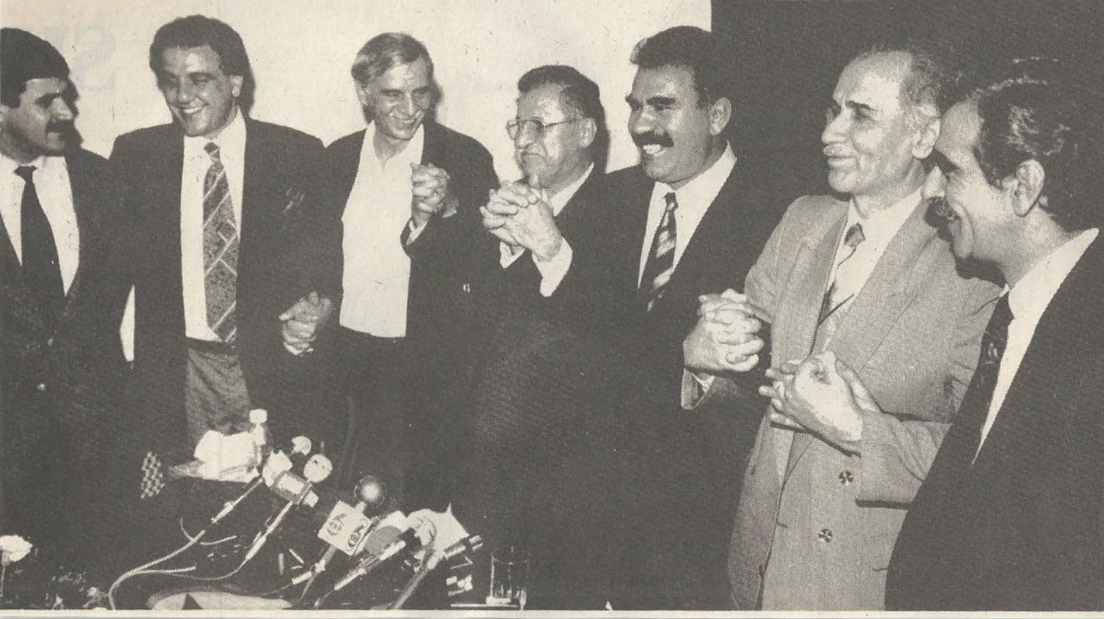 Öcalan, 15 Nisan’da Lübnan’daki basın toplantısında Talabani, HEP Genel Başkanı Ahmet Türk, Sırrı Sakık, Kemal Burkay gibi isimlerle kameraların karşısına çıktı.