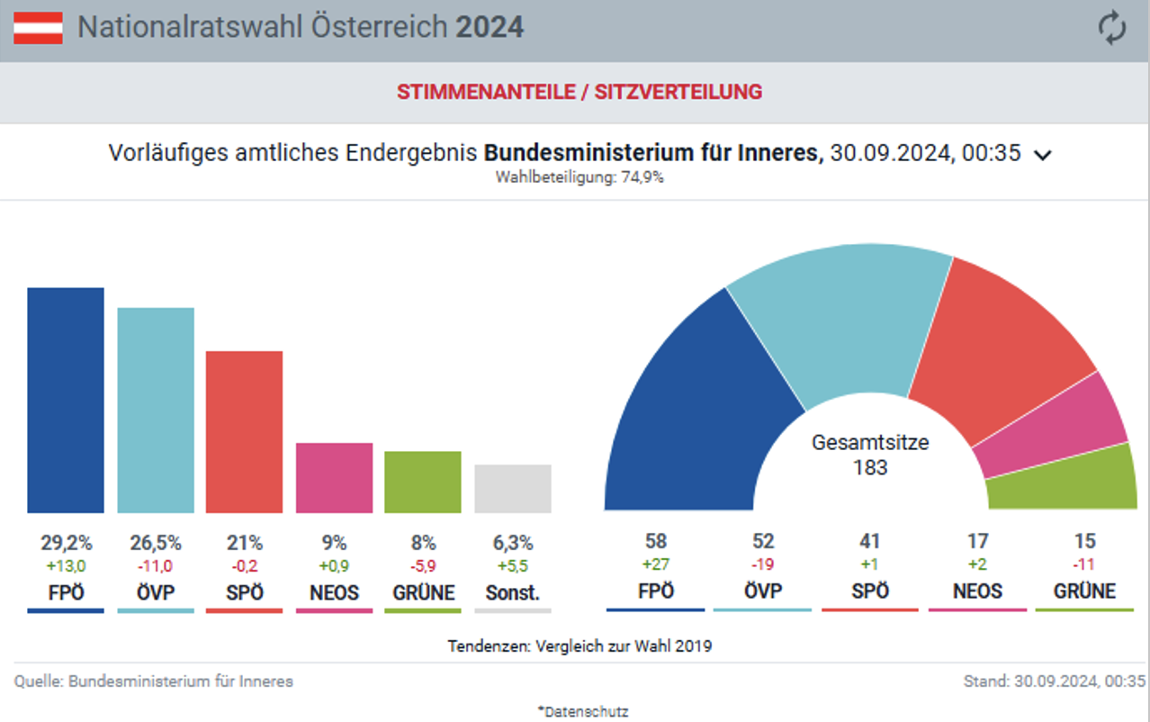 29 Eylül Avusturya genel seçimlerinde, bir kırılma yaşandı. Aşırı sağcı FPÖ, Avusturya tarihinde ilk kez birinci parti oldu. Öte yandan bu zafer FPÖ için bir yönüyle de hayal kırıklığı çünkü FPÖ büyük ihtimalle iktidarda yer alamayacak. Kim ne derse desin; gözlüklü, zayıf ve az karizmatik görünümlü Kickl, partisini %29’luk bir oya taşıdı. Aşırı sağcı FPÖ, ülkenin tüm kesimlerinden yüksek oy aldı. Hem yaşlılar hem gençler, hem kadınlar hem erkekler arasında birinci oldu. FPÖ’nün ele geçiremediği tek kale, başkent Viyana.