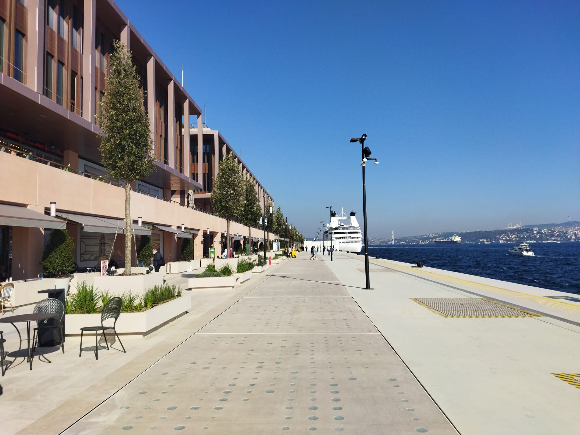 Mimari açıdan gayet güzel olan Galataport’un sahili yürüyüşe açık, sadece limana yanaşmış bir gemi varsa o geminin olduğu kısım portatif duvarla kapatılıyor. Bu ileri teknolojinin yokluğunda sahil (uluslararası liman, yani sınır kapısı gibi bir statüsü olduğundan) 200 yıldır halka kapalıydı.