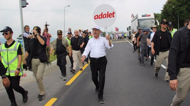 CHP Genel Başkanı Kemal Kılıçdaroğlu’nun “adalet” yürüyüşü devam ediyor. Yüzlerce kilometre geride kaldı. Şimdiye kadar önemli bir problem ortaya çıkmadı. Umarım yürüyüş sorunsuz tamamlanır. Siyasetçiler arasındaki sert atışmalara ve olağanüstü hâl içinde olmamıza rağmen siyasal iktidarın yürüyüşü engellememesi, çok ciddî güvenlik tedbirleriyle olayı idare etmesi de demokrasimize artı puan olarak ekleniyor.