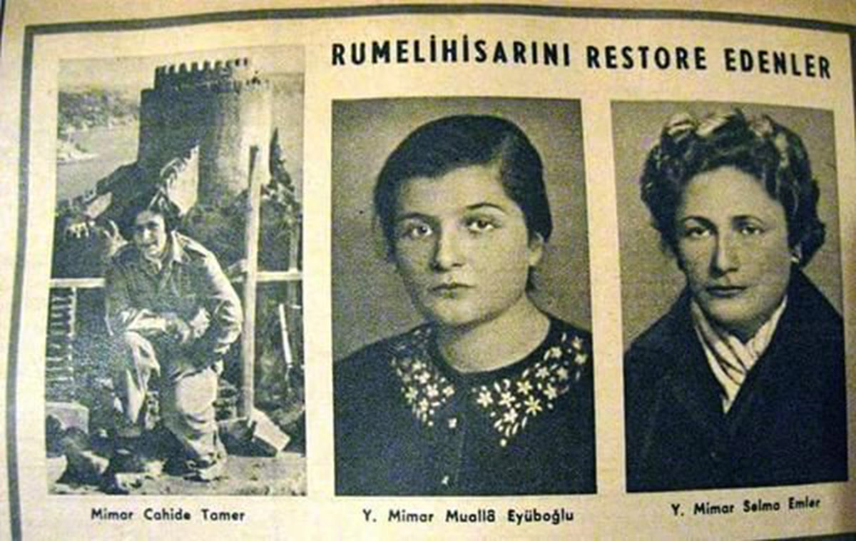 Rumelihisarı’nın üç kulesinin restorasyonu 1955, 1956, 1957 yıllarında üç kadın mimar tarafından yapıldı; Cahide Tamer, Selma Emler; Mualla Eyüboğlu.