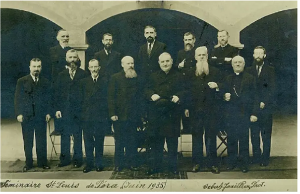 Bir dinî törenden sonra diğer rahiplerle sivil kıyafetler içinde Saint-Antoine Kilisesi’nden çıkarlar: